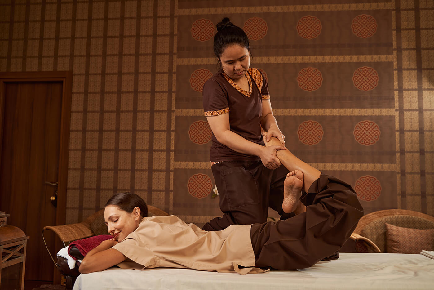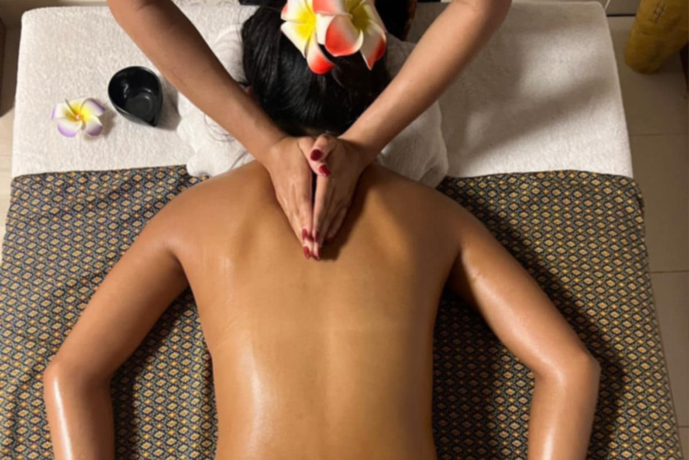 The Thai Massage with Oil blends traditional Thai massage techniques, including acupressure, gentle twists, deep stretches, and medium-pressure oil massage for ultimate relaxation.